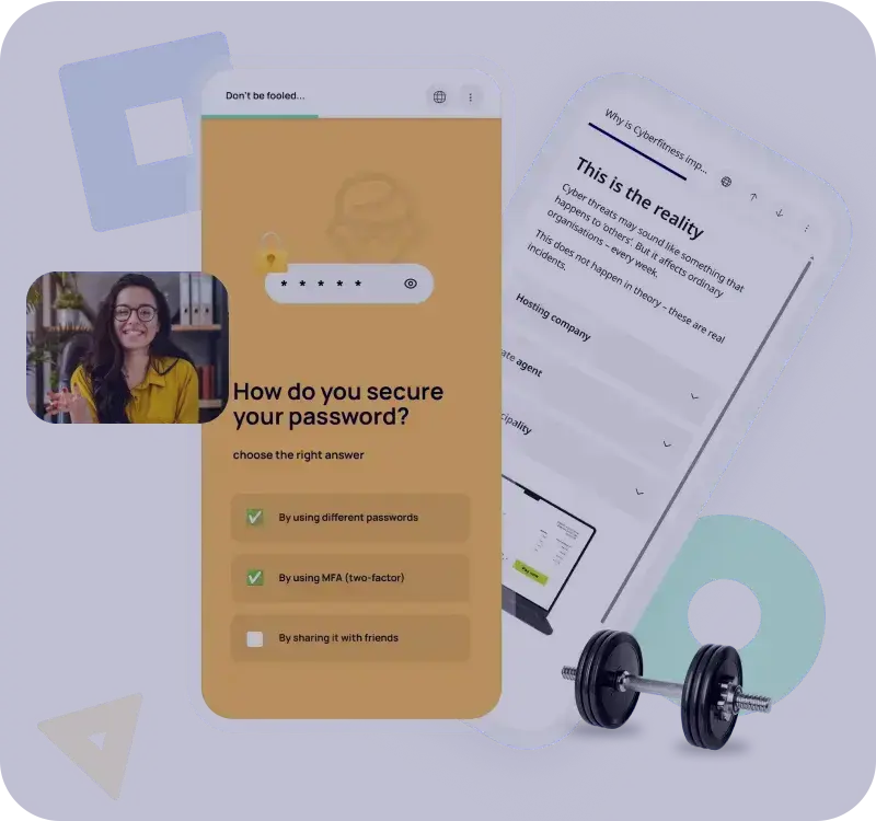 - Because of this practical approach, the knowledge you gain from CyberFitness becomes immediately applicable. It’s not just abstract concepts you memorize, but actionable skills you can "carry with you" and use whenever you encounter digital risks. This makes you more confident and prepared to protect yourself, your data, and your organization at all times.