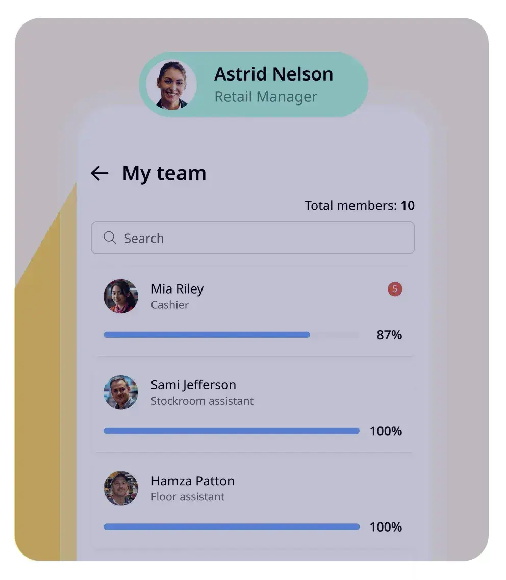 Låt chefer snabbt få tillgång till teamets utbildning och framsteg, med direkta åtgärder och datadrivna insikter för snabbare beslut.